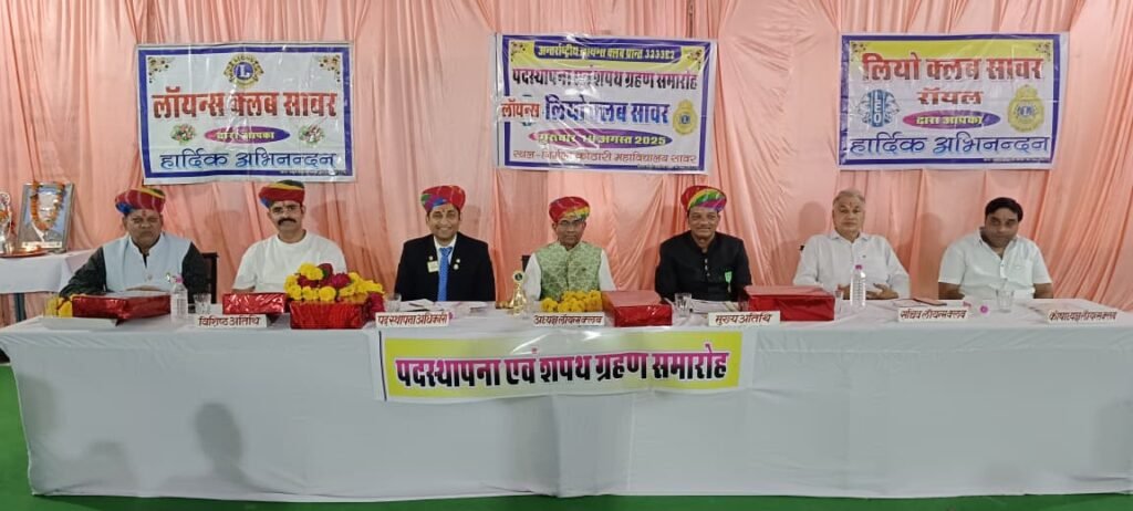 समारोह के पद स्थापना अधिकारी एवं उप प्रांत पाल लायन निशांत जैन ने कहा कि नर सेवा नारायण सेवा के बराबर है। हमें क्लब के माध्यम से निरंतर सेवा कार्य करते रहना चाहिए। उन्होंने सदस्यता वृद्धि एवं सावर में लियो क्लब खोलने की बधाई देते हुए नए सदस्य प्रेमचंद मोची, अरुण कुमार गर्ग, श्रीमती नीलम कौशिक, नेमीचंद खटीक, केदारमल जांगिड़ को सदस्यता एवं गोपनीयता एवं विधान के प्रति वफादार रहने की शपथ दिलाकर, पिन लगाकर लायंस क्लब के सदस्य बनाएं। तथा अध्यक्ष लायन रामेश्वर प्रसाद सुवालका के नेतृत्व में सचिव अशोक कुमार जैन, कोषाध्यक्ष अविनाश कोठारी, क्लब प्रशासक भूपेंद्र सिंह शक्तावत, उपाध्यक्ष रामदेव प्रजापत, मेंबरशिप चेयरपर्सन नरपत सिंह मेड़तिया, क्लब सर्विस चेयरपर्सन एवं लियो एडवाइजर मनोज कुमार सैनी, क्लब मार्केटिंग एंड कम्युनिकेशन सुमन कोठारी, सी. आई. एफ. चेयरपर्सन वीरेंद्र कुमार चौहान, सह कोषाध्यक्ष पूनम सैनी, सह सचिव विलोक जैन, जीएमटी कोर्डिनेटर सुशीला सुवालका, जीएलटी कोर्डिनेटर किरण जैन, टेमर मधु चौहान, टेम ट्विस्टर निधि जैन एवं संचालक मंडल एवं निदेशक रामकिशन सु, मनोहर कंवर, कैलाशी प्रजापत एवं हेमलता सुवालका को पद व गोपनीयता की शपथ दिलाकर पदासीन किया।
