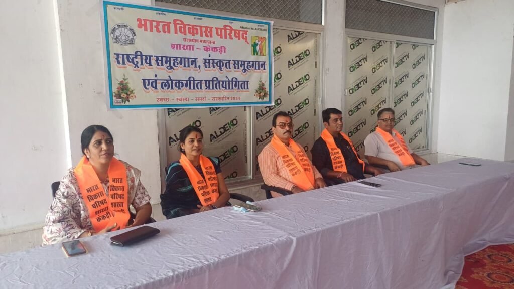 केकड़ी 15 सितम्बर ( केकड़ी पत्रिका) भारत विकास परिषद शाखा केकड़ी द्वारा सोमवार, 15 सितंबर को प्रातः 11 बजे शहर के देवगांव गेट, ICICI बैंक के सामने स्थित अग्रवाल संस्था में शाखा स्तरीय राष्ट्रीय समूह गान प्रतियोगिता का भव्य आयोजन किया गया।