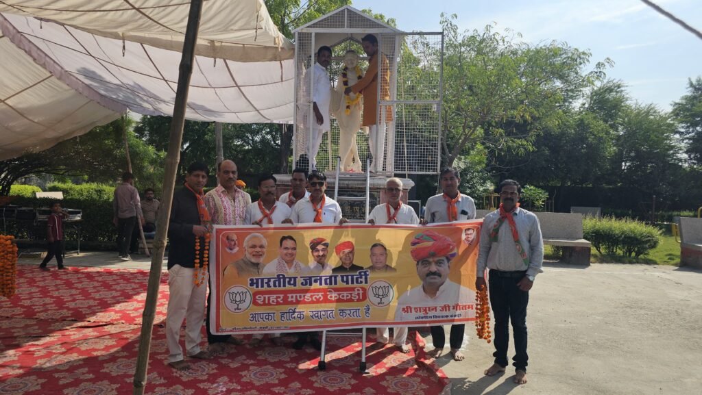 शहर मंडल के कार्यकर्ताओं ने महात्मा गांधी की मूर्ति को स्नान करवा कर माल्यार्पण किया और गांधी पार्क में स्वच्छता अभियान को लेकर श्रमदान किया केकडी शहर मंडल सेवा पखवाड़ा प्रवासी सत्यनारायण चौधरी ने इस अवसर पर कार्यकर्ताओं को गांधी जी की बताय गये मार्ग पर चलने का अनुरोध किया और बताया कि आज नरेंद्र मोदी जी के नेतृत्व में केंद्र सरकार गांधी जी के बताये गये विचारों व शिक्षा को आगे बढ़ा रही है ।