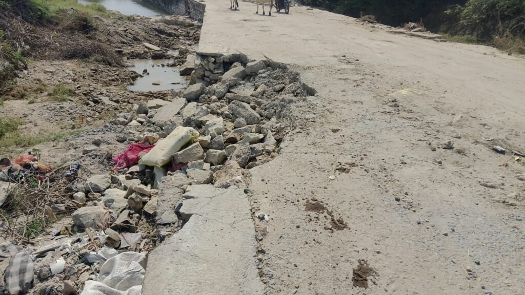 कुशायता 25 अक्टूबर (केकड़ी पत्रिका/हंसराज खारोल) निकटवर्ती ग्राम पंचायत गोरधा मुख्यालय से चिकलिया जाने वाले मार्ग पर बनी रपट (छोटा पुल) एक ओर से क्षतिग्रस्त हो चुकी है। करीब डेढ़ माह पूर्व हुई तेज बारिश और बिसुदनी बांध की तेज चादर चलने के कारण यह क्षति हुई। अब यह रपट किसी भी समय गंभीर दुर्घटना का कारण बन सकती है, बावजूद इसके सार्वजनिक निर्माण विभाग (PWD) की ओर से अब तक कोई मरम्मत कार्य नहीं किया गया है।