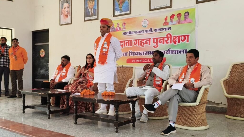 बिजयनगर 09 नवम्बर (केकड़ी पत्रिका/तरनदीप सिंह) भारतीय जनता पार्टी राजस्थान द्वारा SIR (स्पेशल इंटेंसिव रिवीजन यानी विशेष गहन पुनरीक्षण) की कार्यशाला का आयोजन झुंझनू जिले की मांडवा विधान सभ पर इस कार्यशाला का आयोजन रखा गया ! इस कार्यशाला के मुख्य अतिथि जयपुर संभाग के सहप्रभारी व भाजपा अजमेर देहात के पूर्व जिला कोषाध्यक्ष आशीष सांड थे।