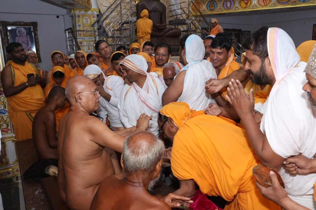 आचार्य पुष्पदंत सागर महाराज के चित्र अनावरण व दीप प्रज्ज्वलन भाग चंद ज्ञान चंद जैन कुमार विनय कुमार सोनू मोनू सावर परिवार ने किया ।आचार्य श्री के पाद प्रक्षालन का सौभाग्य हगामी लाल हेमराज जैन बड़गांव वालो ने प्राप्त किया ।आचार्य श्री को शास्त्र भेंट राजेश कुमार कमलेश कुमार मनोहरपुरा वालों ने किया ।