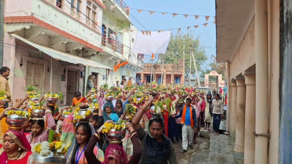 आयोजन को लेकर क्षेत्र में दिनभर उत्साह और उल्लास का माहौल बना रहा।कार्यक्रम की शुरुआत प्रातः 10:15 बजे कलश एवं शोभा यात्रा से हुई। राजस्थानी एवं पारंपरिक वेशभूषा में सजी सैकड़ों महिलाओं ने कलश यात्रा में भाग लिया। शोभा यात्रा वराह मंदिर से प्रारंभ होकर देवगांव गेट, सदर बाजार, जाट मोहल्ला, टोडा गेट, रेगर मोहल्ला, माली मोहल्ला, कोली मोहल्ला, गुरुजी चौक, नाथ मोहल्ला एवं शिव गली होते हुए पुनः वराह मंदिर पहुंची। इस दौरान बड़ी संख्या में श्रद्धालुओं ने सहभागिता कर आयोजन को ऐतिहासिक बना दिया। इस अवसर पर कलश यात्रा का पुष्प वर्षा कर स्वागत किया गया।